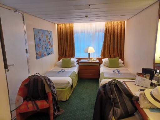 We spent yesterday boarding, which went very quickly, but then we had to wait for our luggage, which came as we were having dinner. This gave us an opportunity to find our way around the ship. Most importantly we found the table tennis table, which is indoors, which is an improvement on previous voyages where you not only have to battle the roll of the ship, but also sometimes quite a strong breeze. We have already made a few friends who also play, so we are off and running.