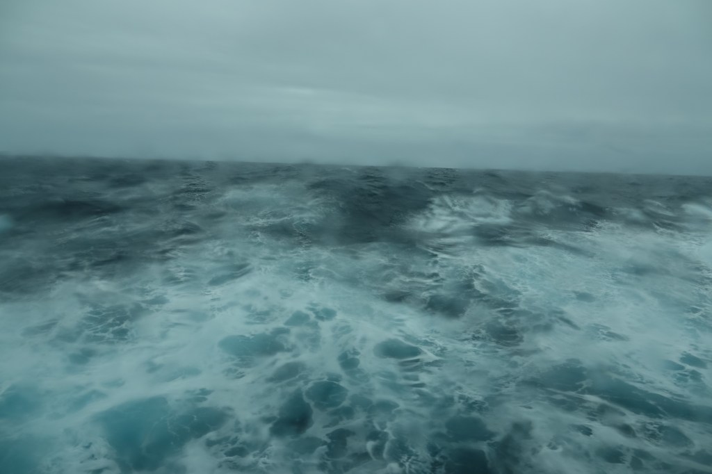 As Val has mentioned, she did not enjoy the pretty heavy Atlantic sell that we were now heading into, indeed, I believe a force 7 gale, which had the ship rolling about quite dramatically. The Captain has even closed the decks. It certainly looks very dramatic out of the window of our cabin as we are fairly close to the water line. I have tried to capture it on video, but I fear I have not done it justice, so here is a rather smudgy photo…