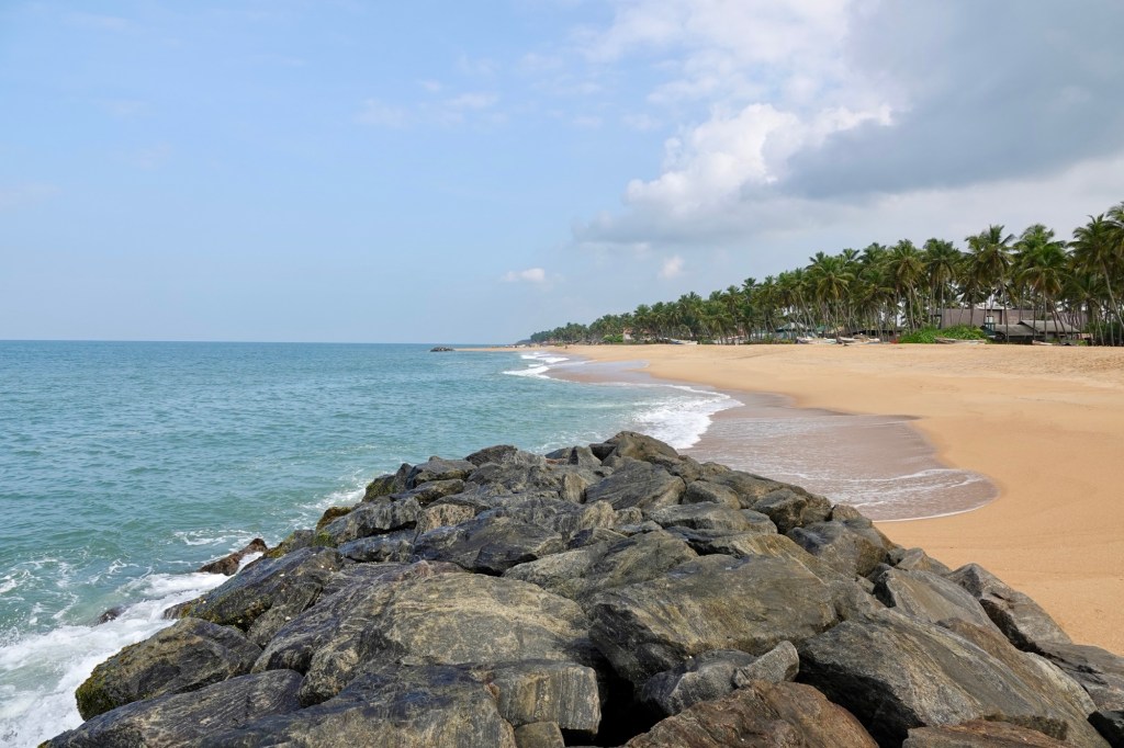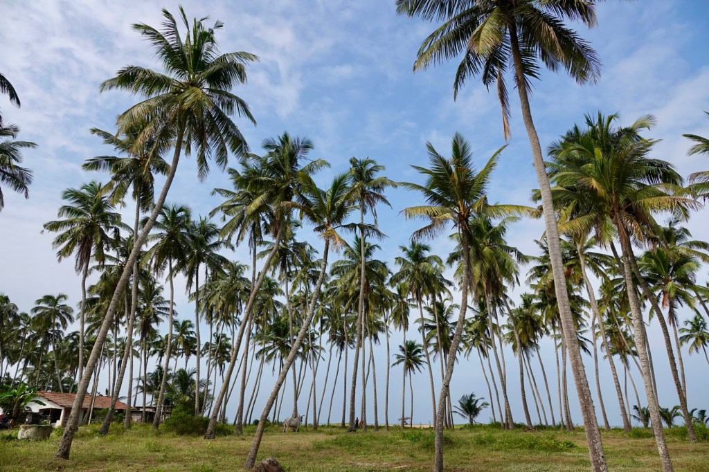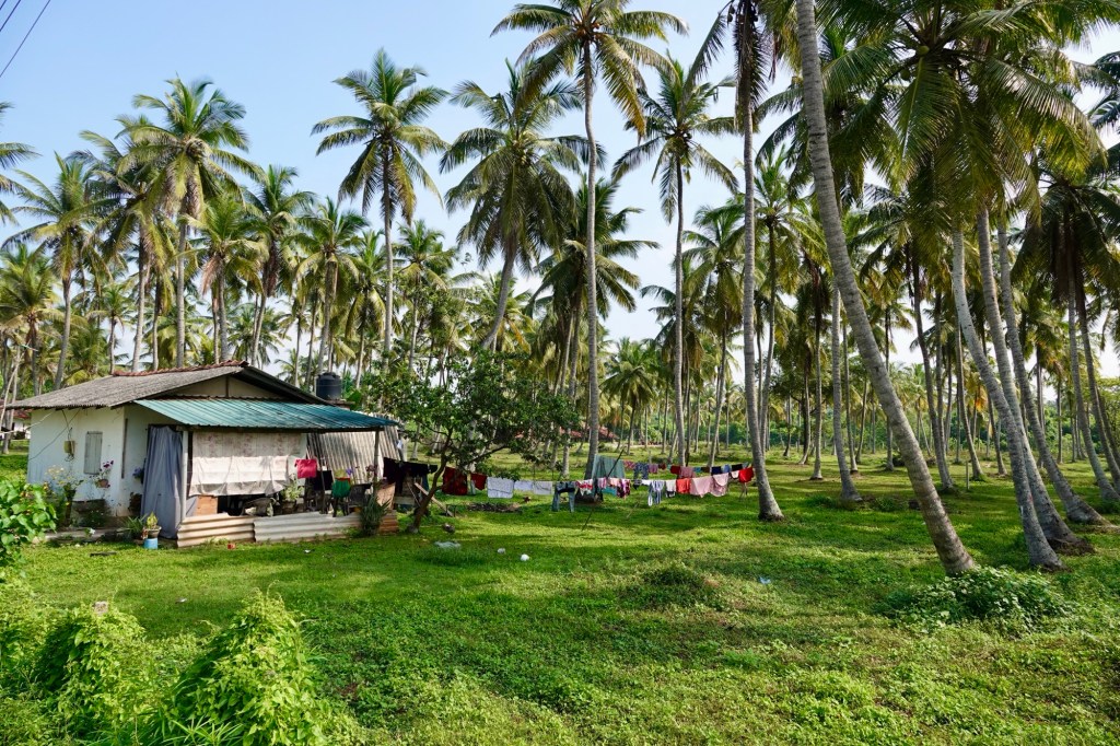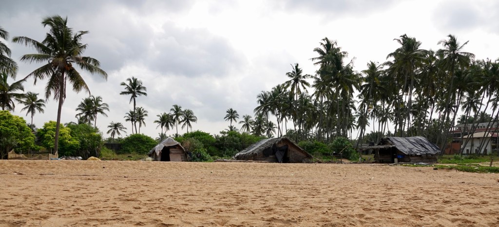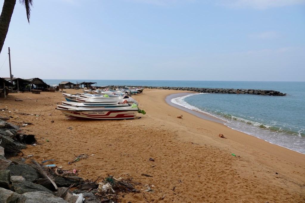 Where we are, there is a stretch of about 2.5kms from the beach to the main road, which is much more peaceful, consisting of many small plots of land with many coconut palms and a variety of some very large houses and some smaller bungalows. There is a thriving fishing community – well at least they look thriving if the amount of fish is anything to go by. I get the feeling it an area where you have your plot of land and, if you make a bit of money, start upgrading the house. Some photos to give you a flavour…