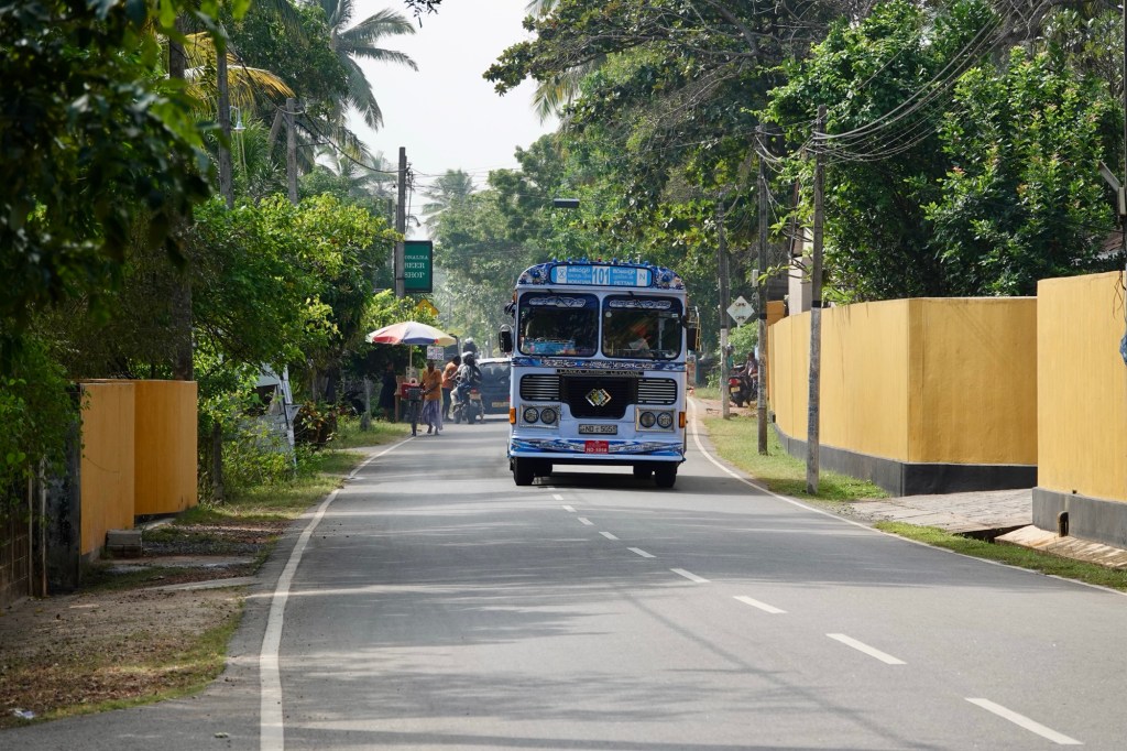 Val had a fairly early appointment with our lovely lady Ayurvedic doctor, Uyesha, who does the shirodhara treatment, so I availed myself of the opportunity to have a walk along the road by the beach armed with the camera. The area around the hotel basically consists of the main road from Colombo to Chilaw, passing through Negombo on its way north. If you keep going, you will arrive in Trincomalee and Jaffna. This road, as far as we have travelled it is one long ribbon development of virtually every business you can think of from tile and brick making in kilns to fashion outlets all sitting next to each other. Definitely not zoned! The action is decidedly bustling with everyone weaving in and out of the traffic on tuktuks, motorcycles, cars and, King of the Road, buses.