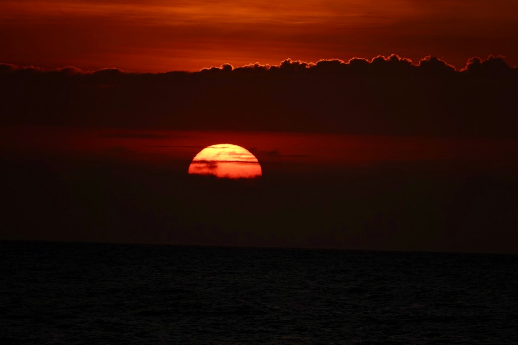 Not a lot happened here except that no alcohol was served all day, which possibly upset our French friends. However!!!! There WAS a sunset worthy of some note AND a full moon!! Contain your enthusiasm, here they come, ranking alongside hotel rooms and local birdlife in what the readers of this blog cannot get enough of….