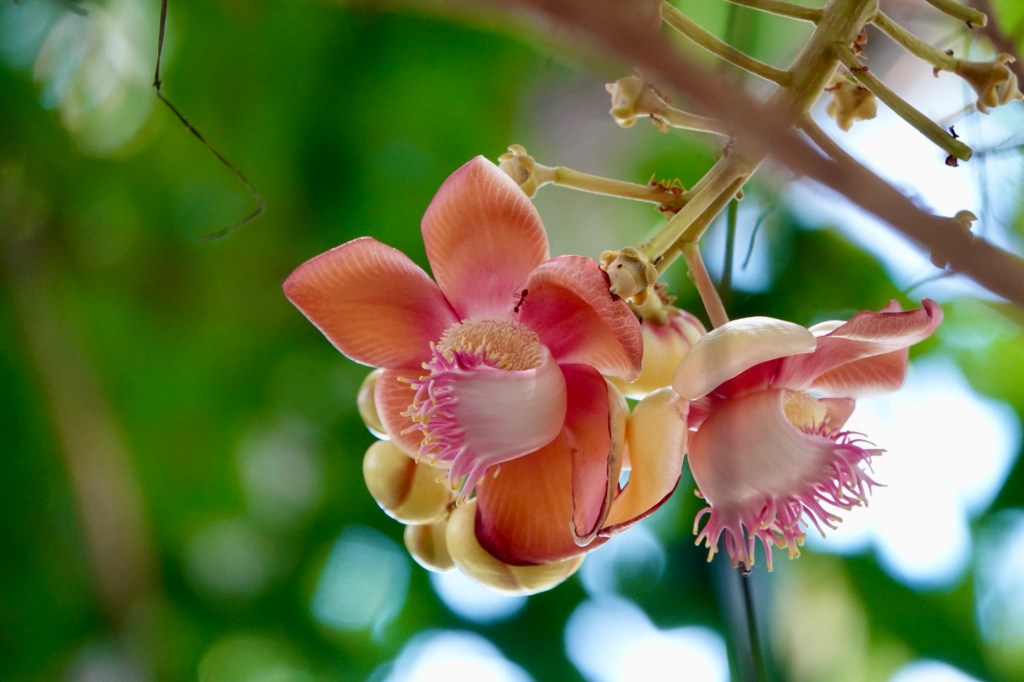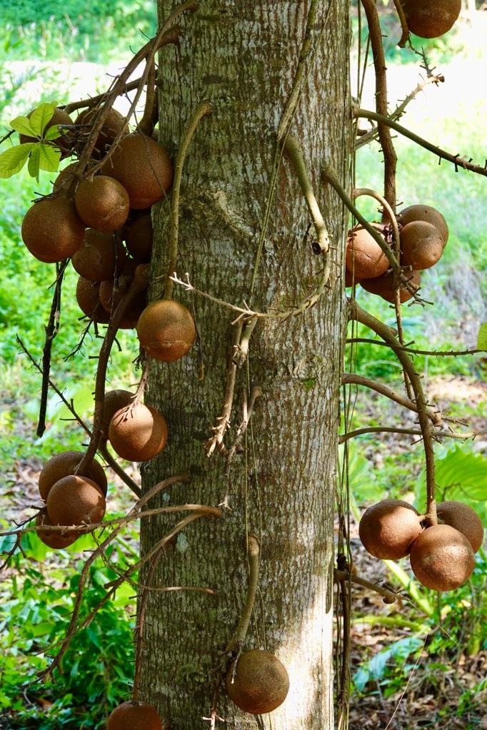 I know how much you enjoy some photos of the flora and fauna, so here are a couple of photos of a tree outside our room, which, I think, is called the cannonball tree.