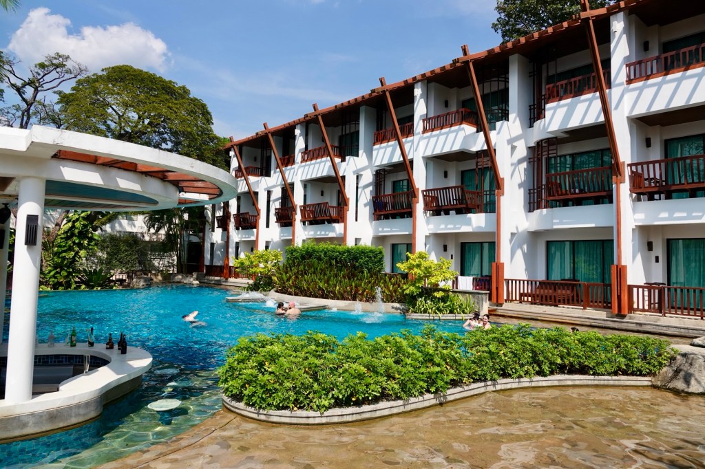The hotel we are staying at is very nice and we have a ‘pool access’ room, though we have to climb over the next room’s mini pool to get to the main one. Time for a photo of…..you guessed it, our hotel room!! No complaints, please, as it is the third room we have stayed in so far and the first to be photographed…