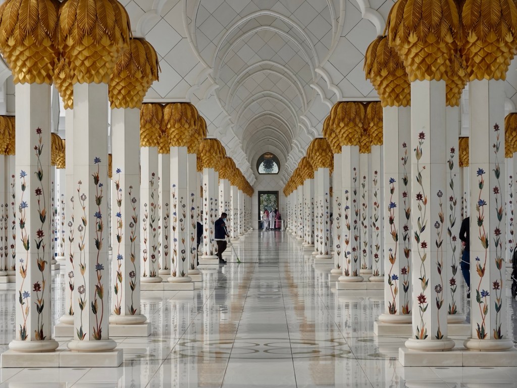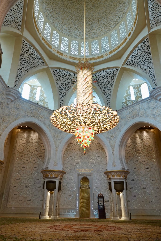 I know you like a few statistics, so here we go. The mosque took from 1994 to 2007 to be built and covers about 12 hectares, not counting external landscaping. It has 82 domes, what is considered to be the world’s largest carpet and, inevitably, some very large chandeliers. It can accommodate 40,000 worshippers. More detail below…