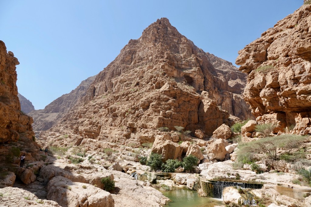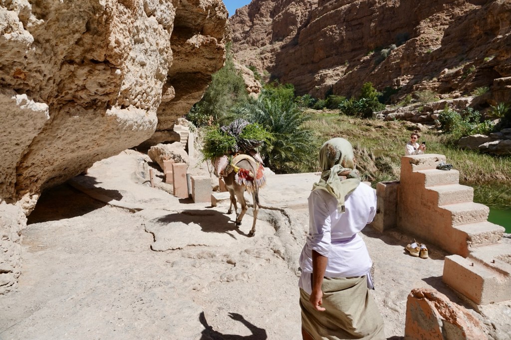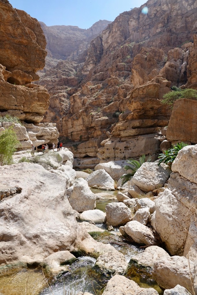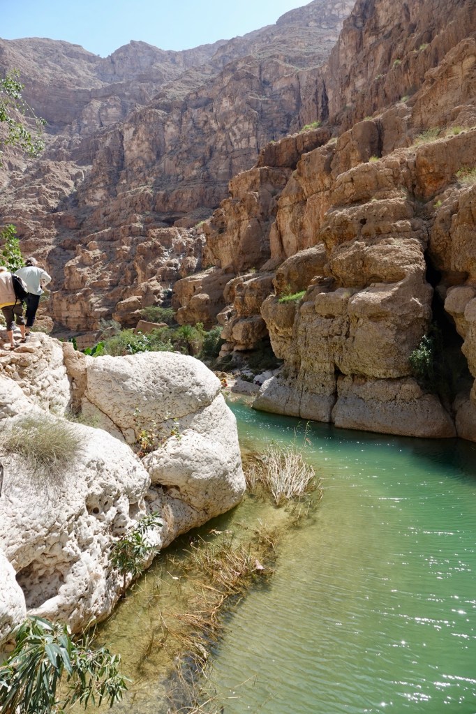 This a popular tourist destination as you effectively walk up the wadi and then swim in various pools, the final ones leading to a waterfall in a cave. Unfortunately it would have been way too challenging for Val, so she and Ahmed took up residence at a nearby cafe and I set off paying 1 Omani Rial for the boat trip to the other side of the wadi where the path started. It did slightly feel like paying Charon to take me over the River Styx!