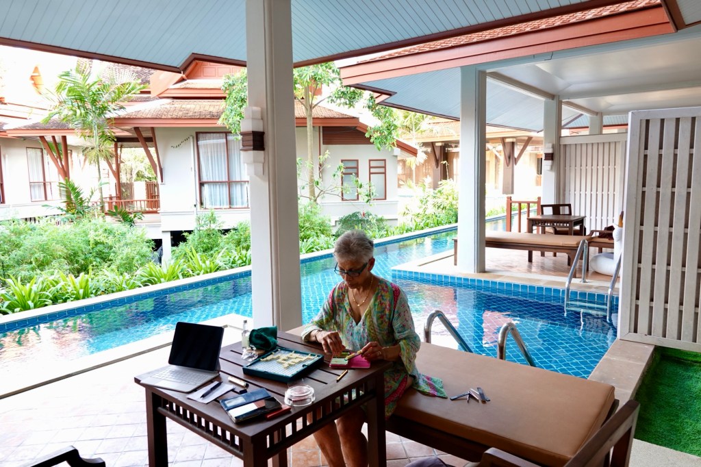 We found our hotel, the Samui Buri Beach Resort, OK by dint of me effectively memorising the route from Google Maps. We have a very nice room (accessible!), which opens out onto a pool that runs along the backs of the other rooms along side.