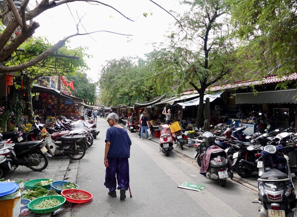 Mostly the local Vietnamese get around on motorcycles, though you do see a few pushbikes, mostly ridden by tourists. The driving is, as ever in Asia, very skilled, with little wastage of space, a good amount of warning honking (but not too loud) when about to overtake, all done at a sensible speed. Crossing the road is a matter of setting off and assuming everyone will drive round you, which they do. Nobody loses their cool, but then there is little point in doing so.