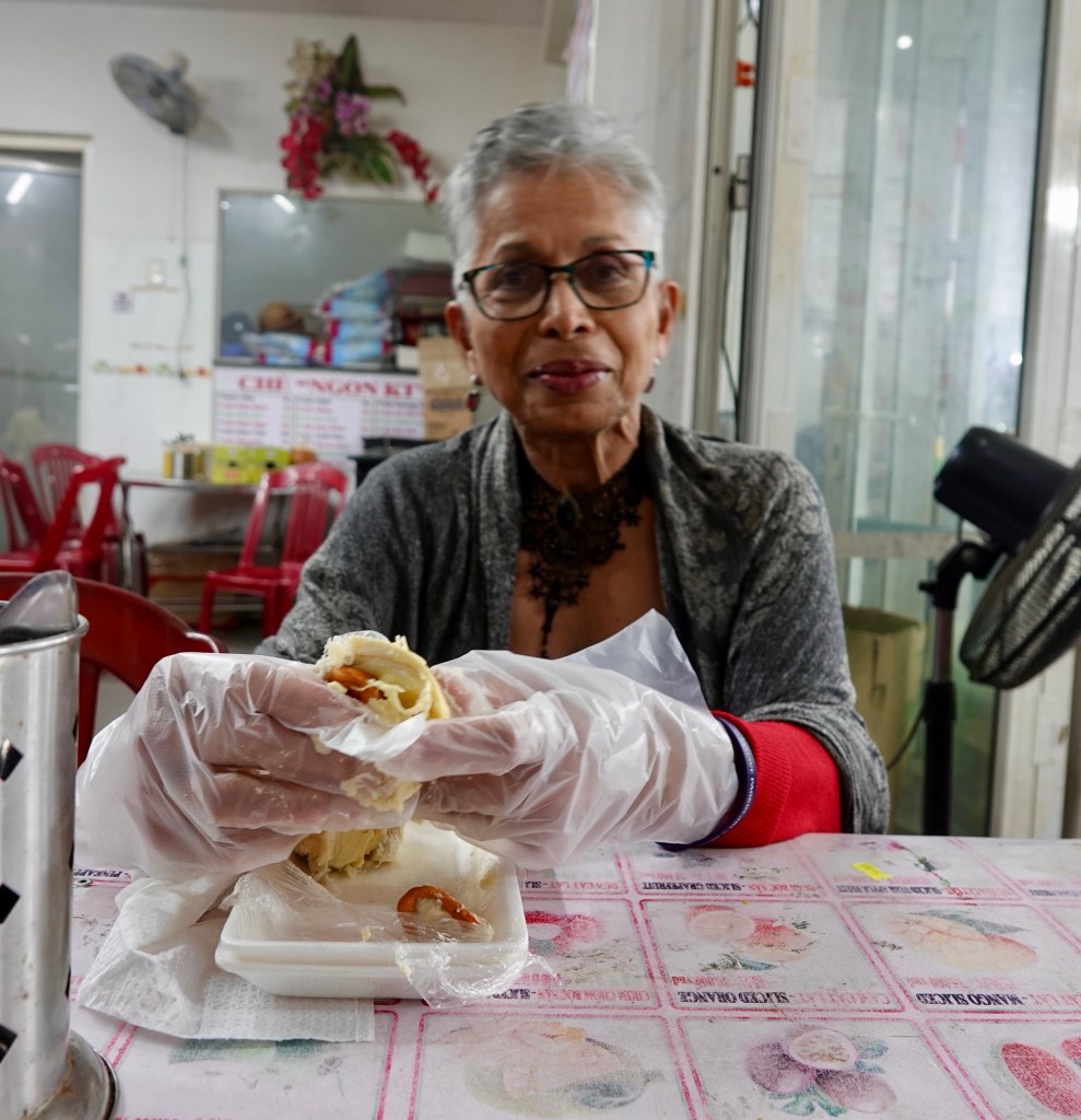 We stopped for some stall food, being prepared behind Val. Basic, but tasty. The stall holders, like everyone else in Vietnam we have met, were all over Val, making sure she was comfortable including getting an umbrella over her when it started to rain. She is not allowed to move on her own without about 3 locals helping her. It is very sweet!