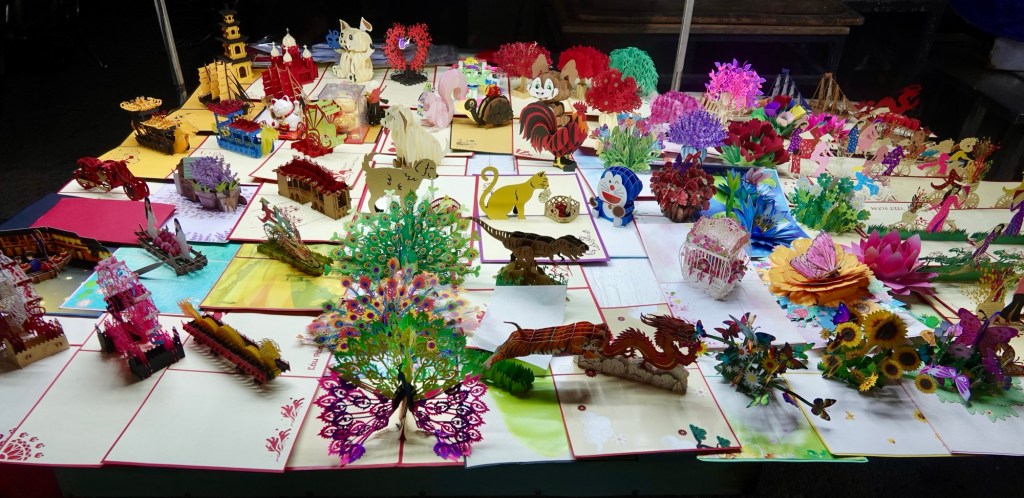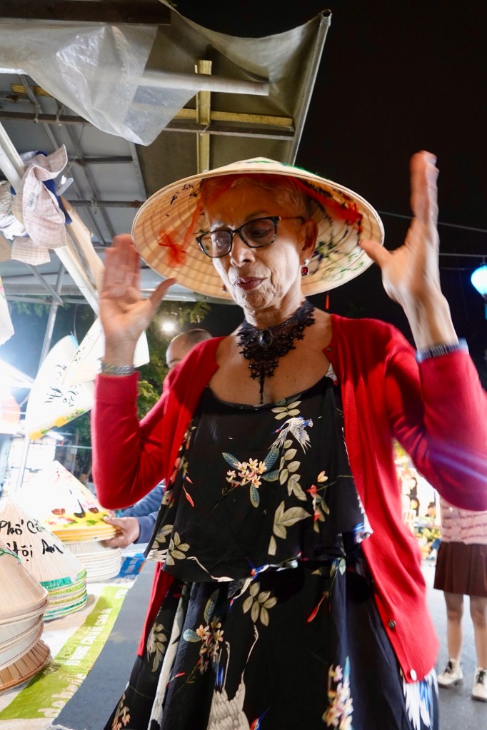 OK, that was the day market, but all good tourist hotspots have to have a night market and Hoi An is no exception. Val and I asked at Reception if there was anywhere in Hoi An that had live music only to be met by ‘not that we know of’. They did, however, have one of their porters, Hien (I think that is the spelling), who was sent for, who very kindly told us of a place that has Vietnamese music and dancing, which sounded interesting.