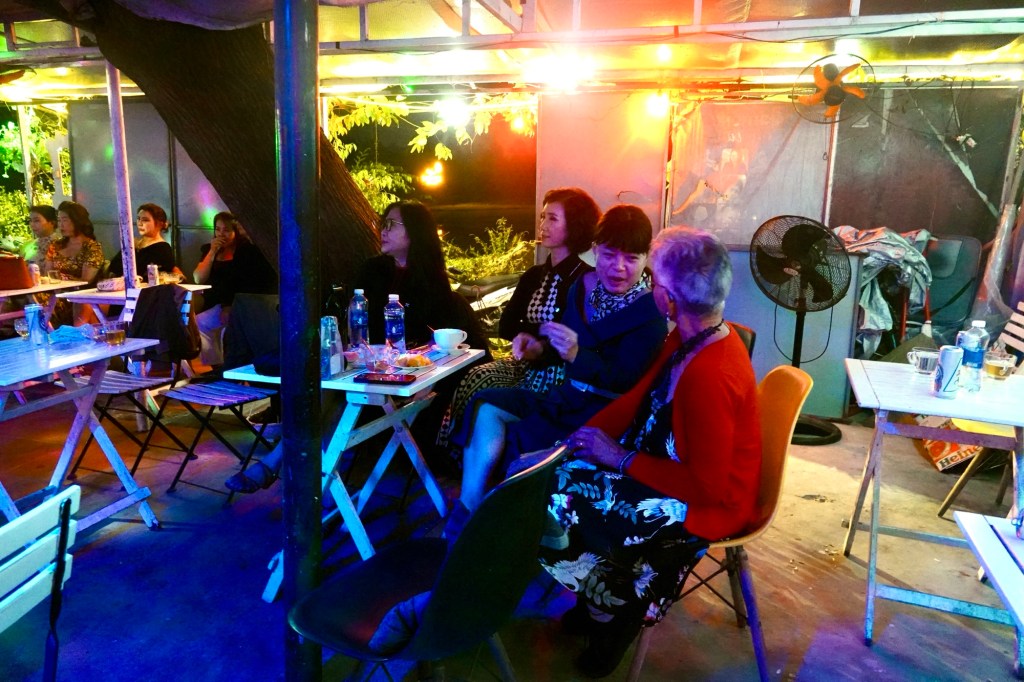 I would describe it as a bit like a club for ballroom dancing. There is a live band and members of the audience sing (really well, I would add). The repertoire is all Vietnamese music and, if anyone likes the song they are going to sing, they go to a large vase of flowers, take one and hand it to the singer, who can end up with quite a bunch.